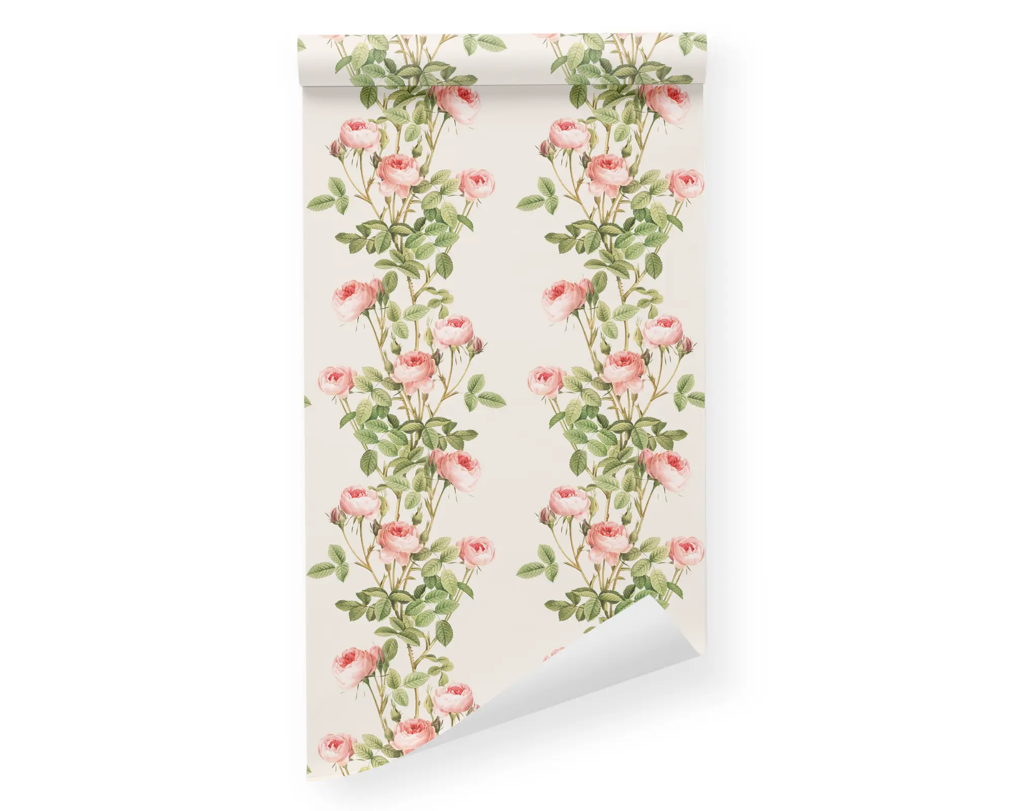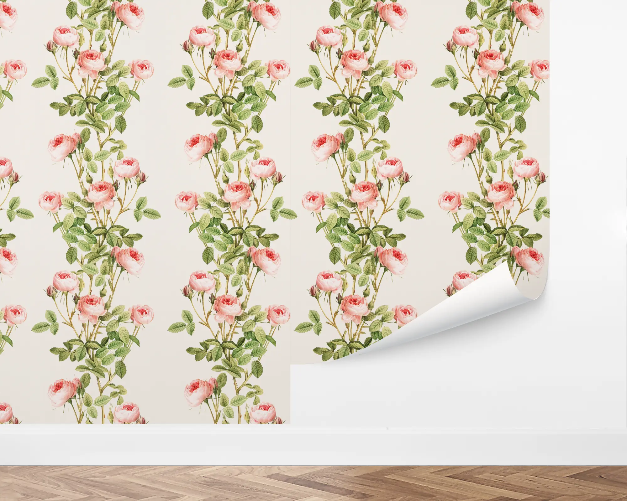 Bring a classic, natural accent wall to any room in your home with our Vintage Roses Peel and Stick Wallpaper. Realistic pink roses grow up in rows on an ivory background. Personalize with endless combinations of colors to match your interior style perfectly!