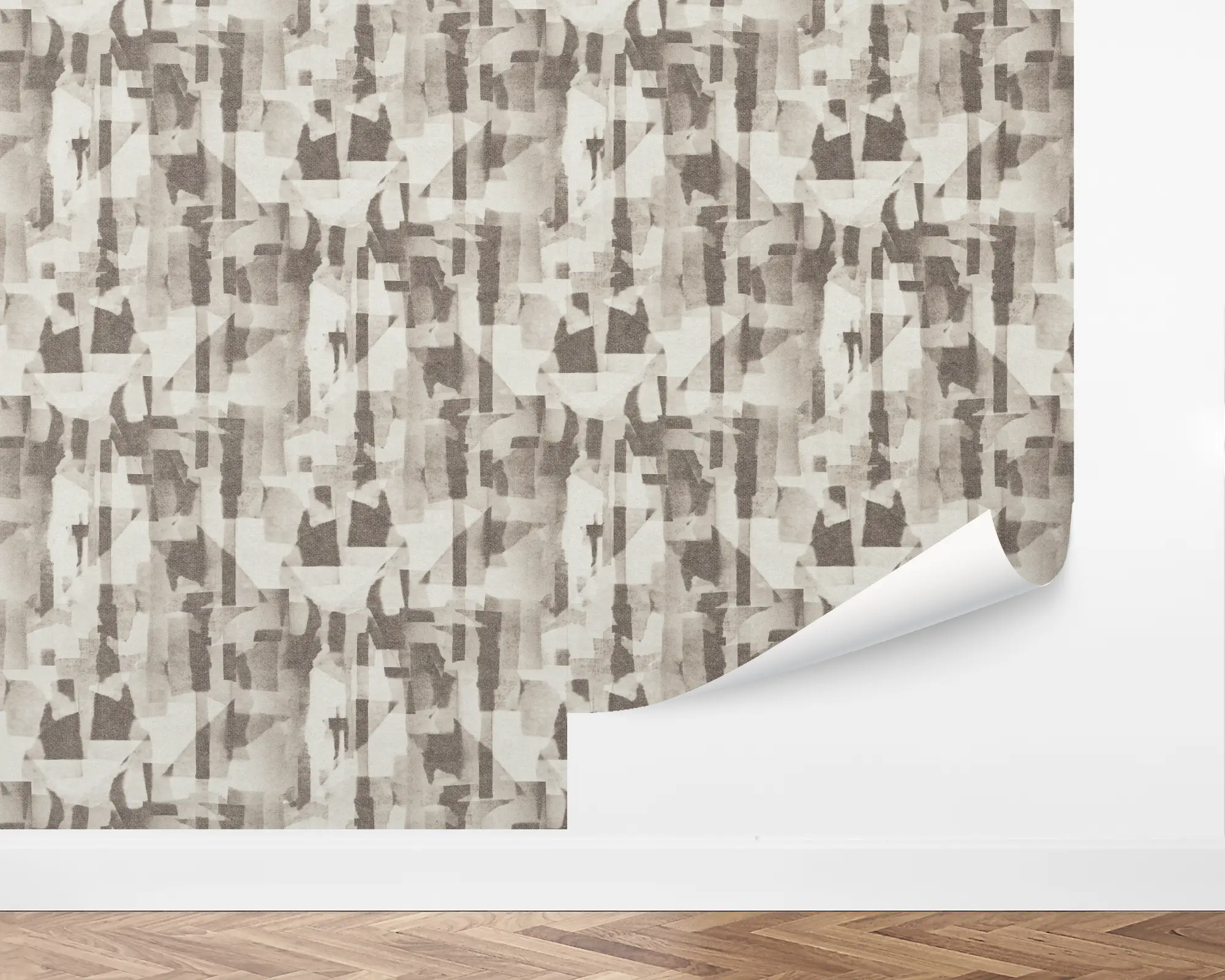 Make a statement on any wall with our Abstract Layers Peel and Stick Removable Wallpaper. This design features a collage of layered geometric shapes and watercolor textures in soft taupes, beiges, and stone grays. The overlapping forms and organic brushstrokes create a modern, moody rhythm perfect for contemporary spaces.
