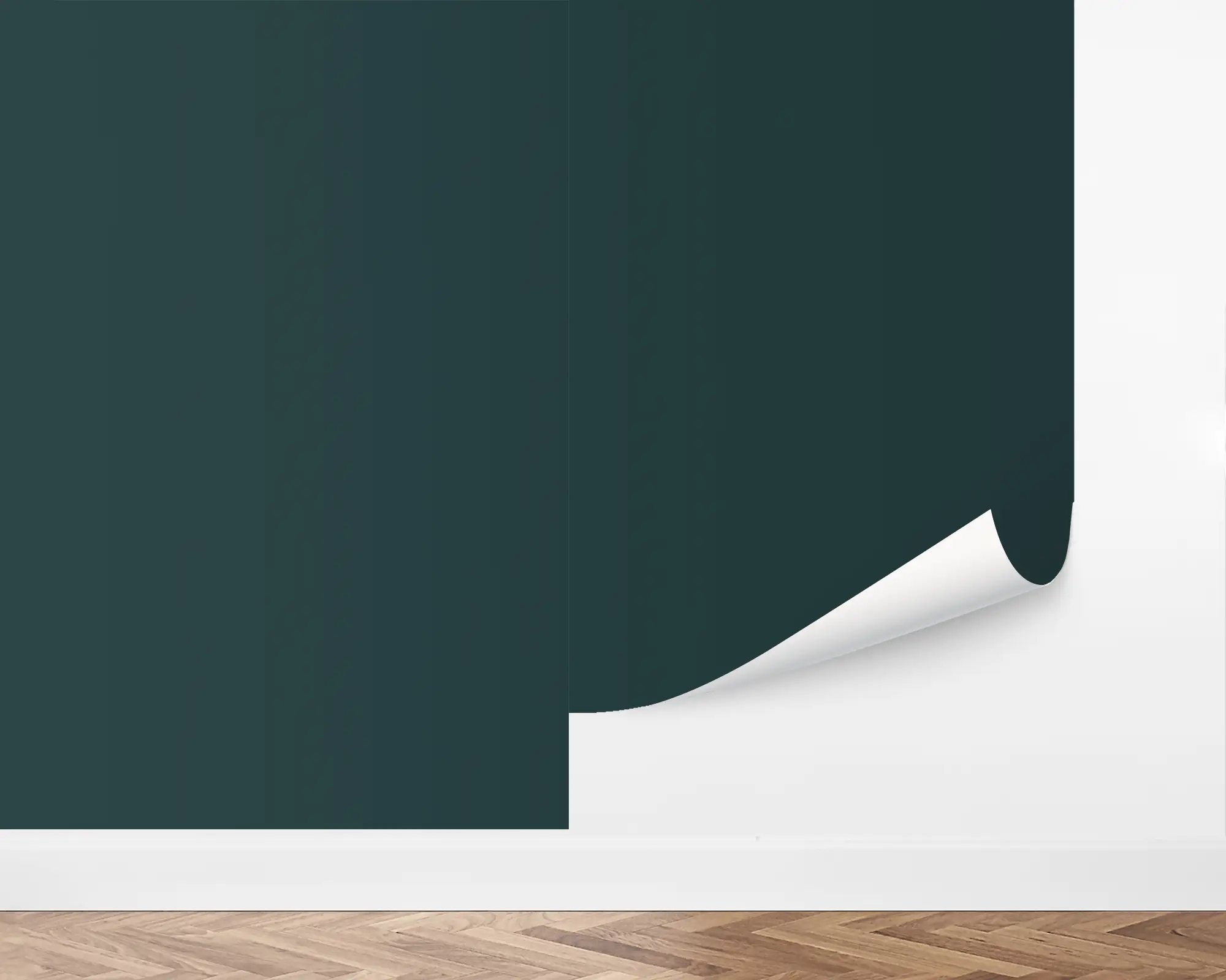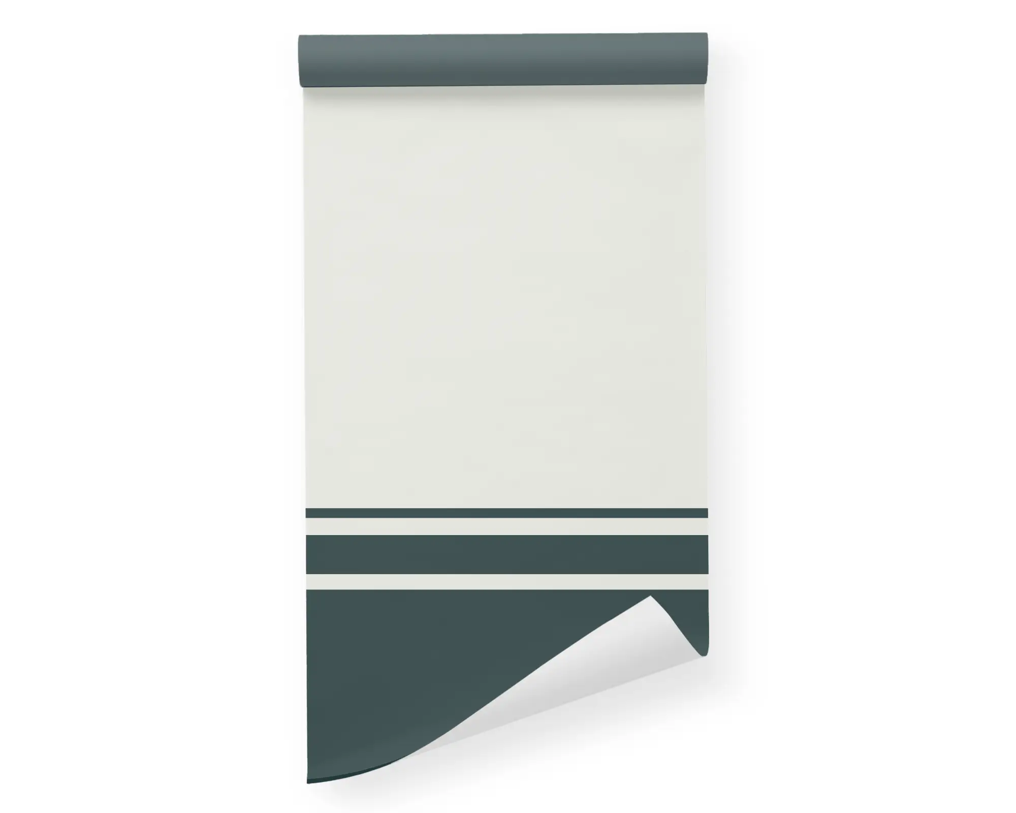 Our Chair Rail peel and stick removable wallpaper is a perfect example that even simple things can make a bold statement! A neutral background takes the top fourth of the design, while bold stripes overlap it, filling the rest of the space in a beautiful deep green. Please note: Each height of this wallpaper has been custom fit to display the full design, ordering different heights will not match up.
