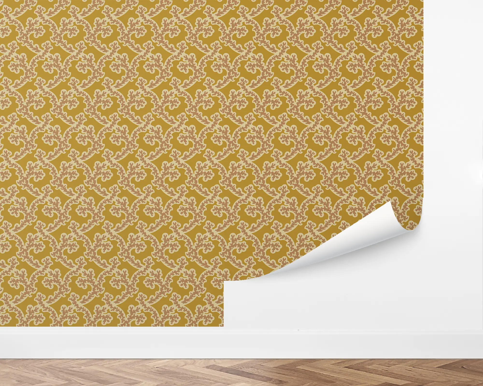 The Classical Atticus Wallpaper brings timeless refinement to your home with its intricate scrollwork pattern in warm golden ochre tones. Inspired by historic European textiles, this design merges classical beauty with modern sophistication—perfect for living rooms, dining spaces, or elegant hallways. Add depth and heritage-inspired character to your walls with this peel and stick wallpaper that’s removable, renter-friendly, and fully customizable to match your decor palette.