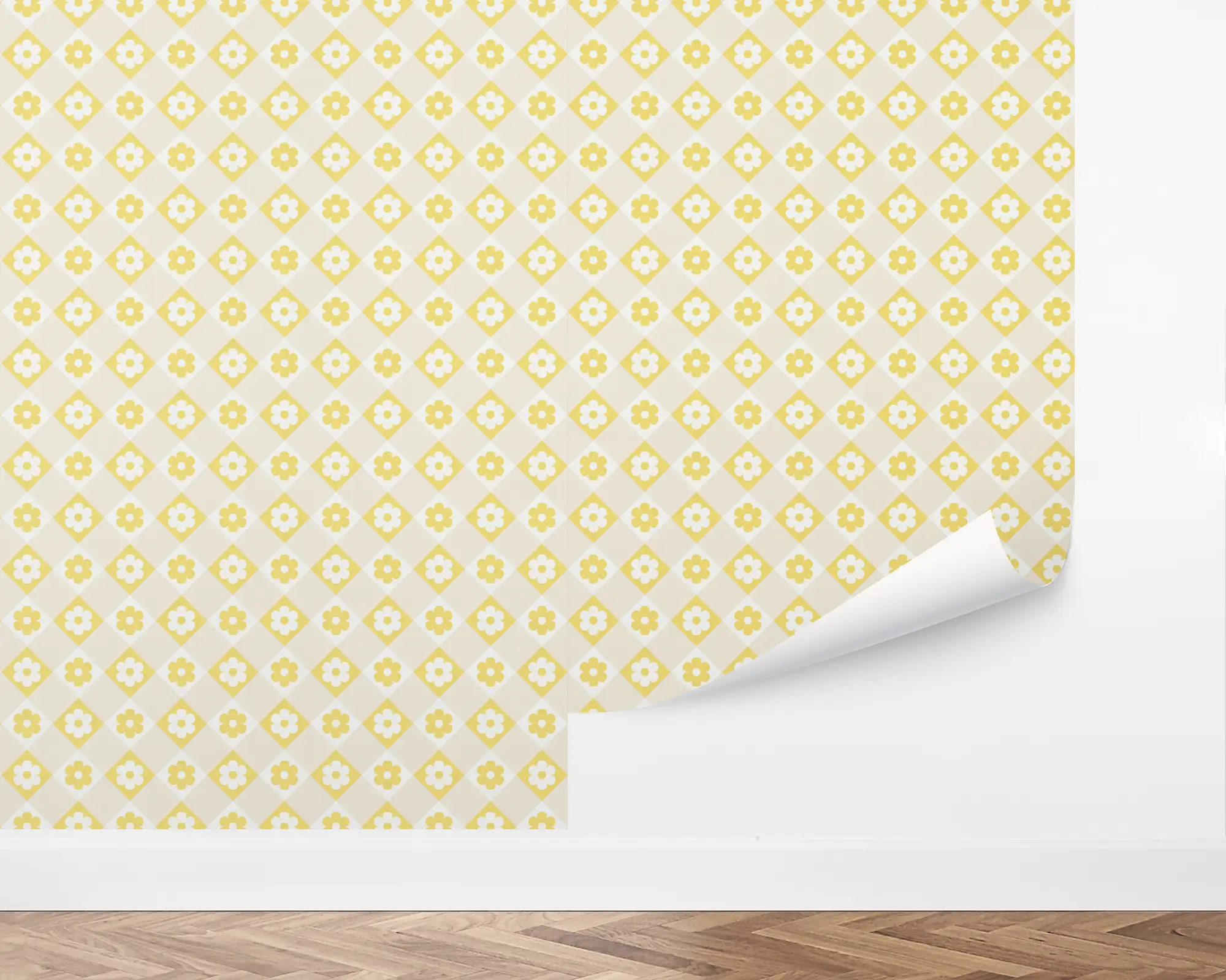 Add a cute accent to any wall in your home with our Daisy Blocks Peel And Stick Removable Wallpaper. Hemlock and ceramic flowers are planted in rows on a neutral checkered background. Choose from endless combinations of colors to match your interior style perfectly!
