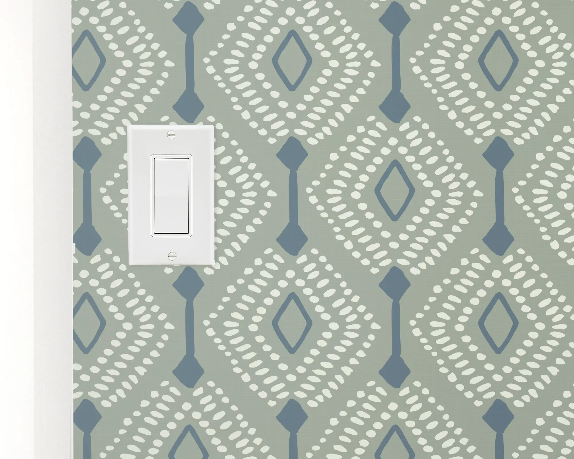 Give your home the vibe you've always wanted with our Dotted Diamonds Peel and Stick Removable Wallpaper. This fun design features a batik-styled diamond pattern over a soft green background. Fully customizable with any of our beautiful colors, this wallpaper is the perfect way to liven up nearly any space.