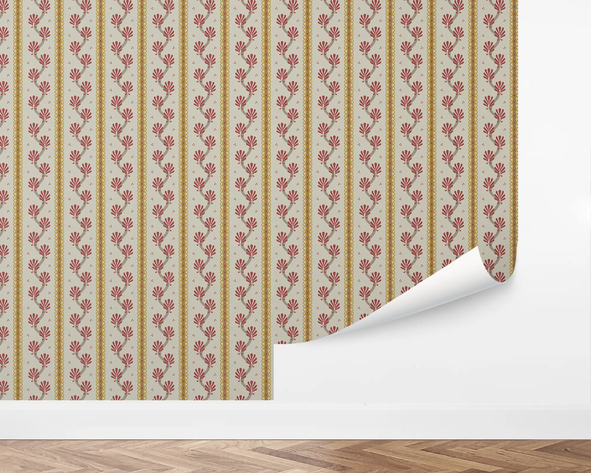 The Eleanor Stripe Wallpaper captures vintage charm through a timeless blend of vertical stripes and delicate floral motifs. Featuring soft cream and muted red tones, this wallpaper adds warmth and character to bedrooms, nurseries, and cozy living spaces. Inspired by classic 19th-century textile patterns, it brings an elegant, heritage feel to your walls while remaining easy to apply and fully removable. Available in over 200 customizable colors, the Eleanor Stripe Wallpaper perfectly balances nostalgia with modern convenience.