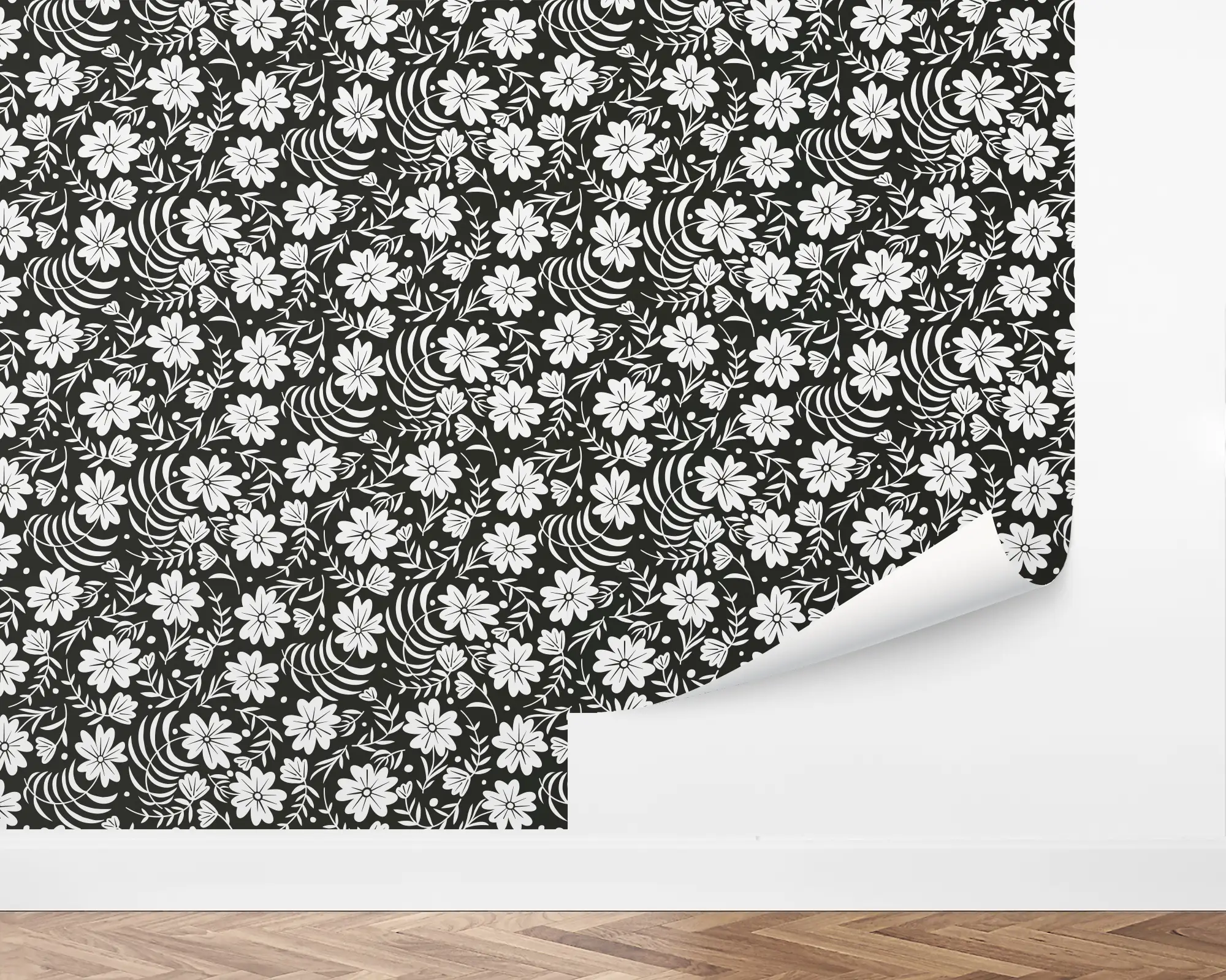 Our Floral Verse Peel And Stick Removable Wallpaper add a touch of nature to any room in your home. Illustrations of white botanicals are laid on top of a contrasting charcoal background. Personalize with hundreds of color combinations to match your interior perfectly!