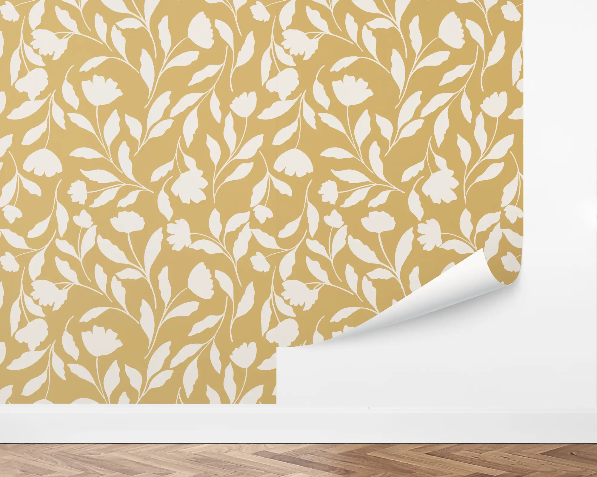 Our French Marigold Peel and Stick Wallpaper are sure to create the perfect nature accent wall in any room of your home. Ivory silhouettes of flowers are placed on top of a faux gold background. Personalize yours with your favorite color combination to be perfect!