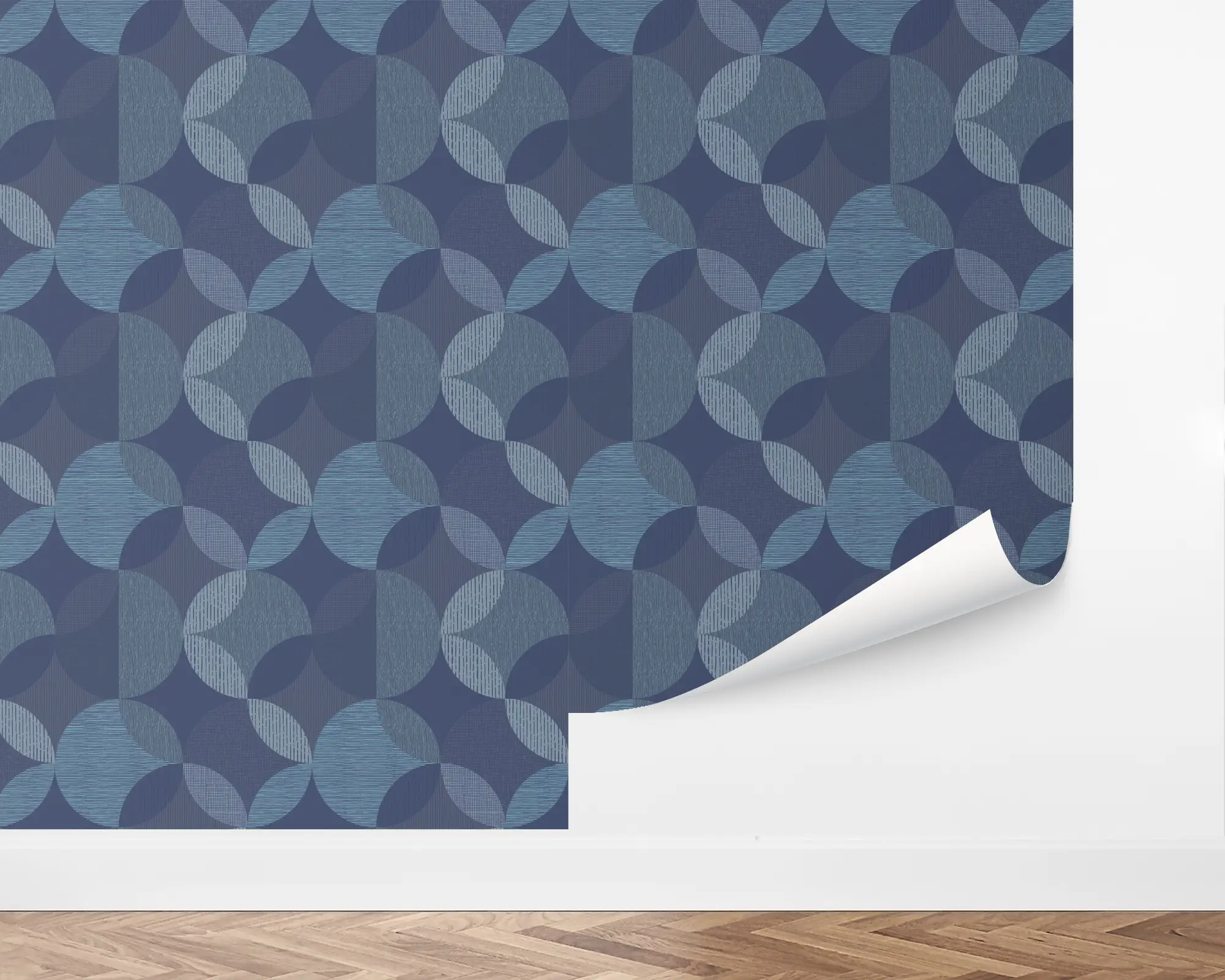 Transform your favorite room with our Geometric Zen Peel and Stick Removable Wallpaper. This exciting design features a pattern of overlapping circles in a blue monochrome. Customizable with any of our versatile paper types and colors, this wallpaper is perfect for any bedroom, office, or living space.
