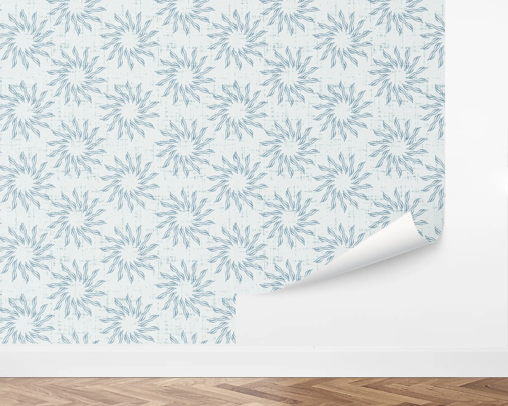 Create a truly unique, magical space with our Handdrawn Sunburst Peel And Stick Removable Wallpaper. This striking design features a pattern of spiraling sunbursts in a monochromatic, blue color scheme. Fully customizable with any of our beautiful colors, this wallpaper is perfect for nearly any space.