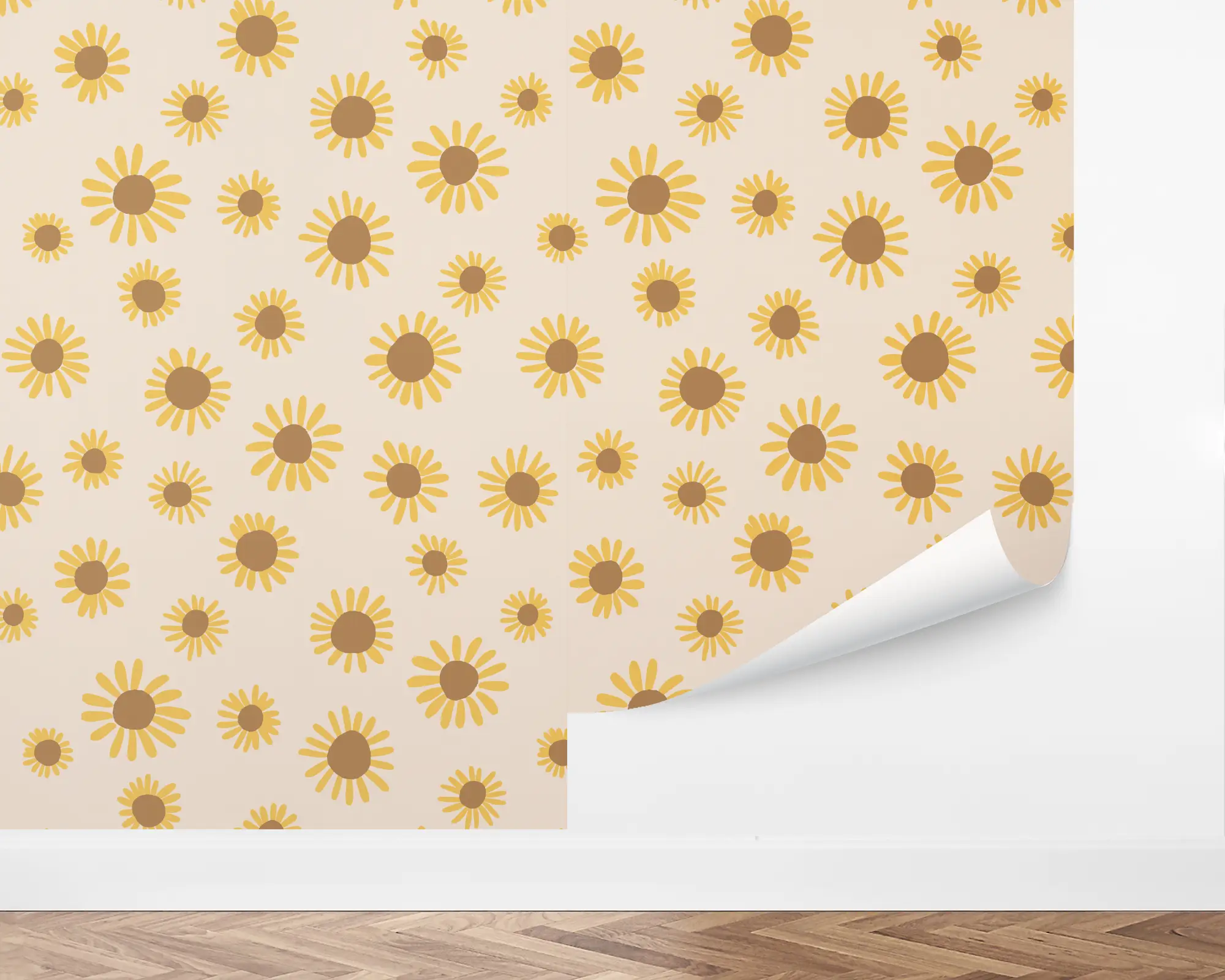 Our Handmade Sunflowers Peel And Stick Removable Wallpaper are sure to make a statement on any wall in your home. The bright yellow flowers are sprouted around a grain background. Choose from endless color combinations to match the style of your interior!