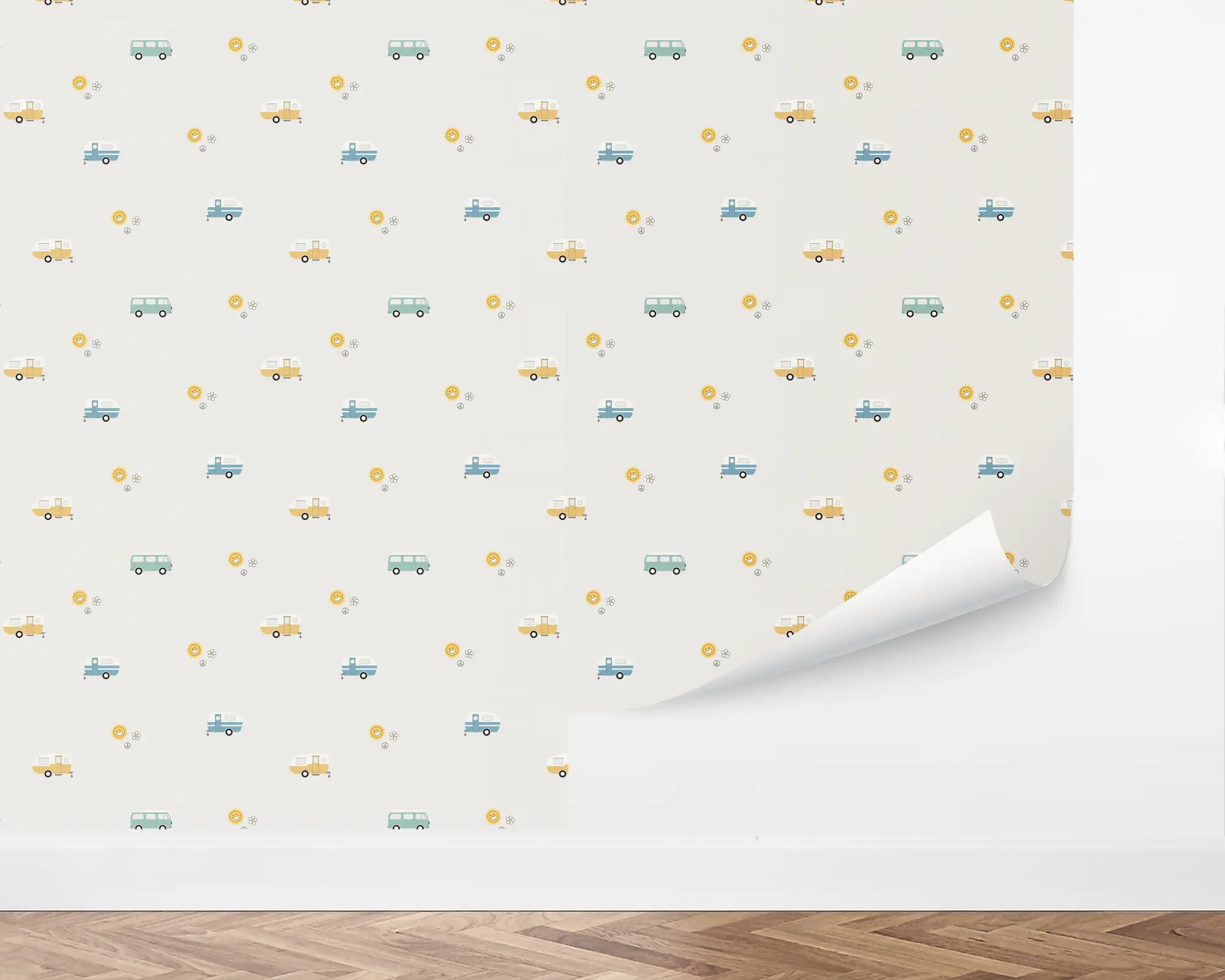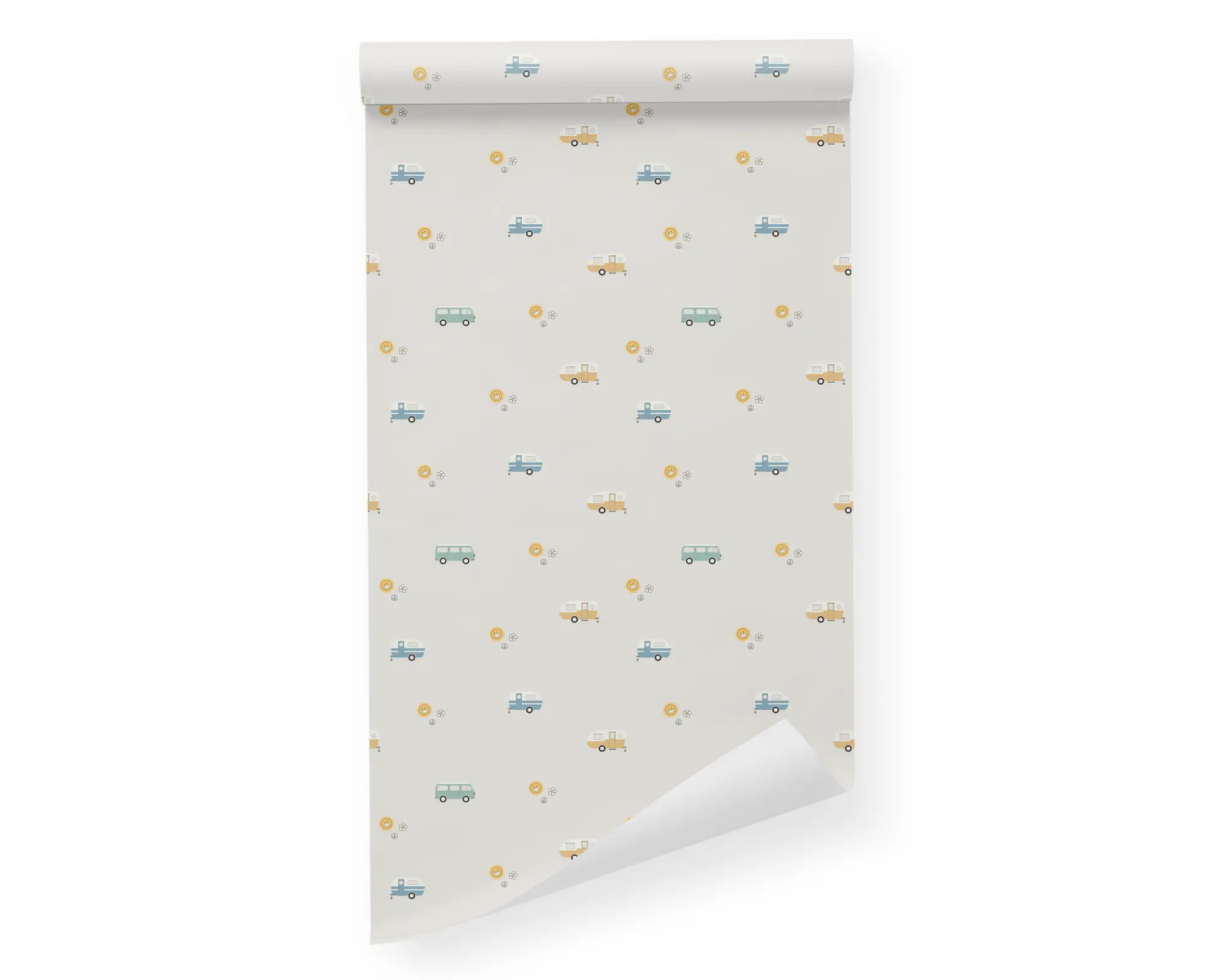 Manifest the fun vibes of the van life with our Happy Camper Peel and Stick. This adorable design features a variety of tiny, retro RVs in fun colors. Fully customizable with any of our beautiful colors, this wallpaper is the perfect way to give any space some character.