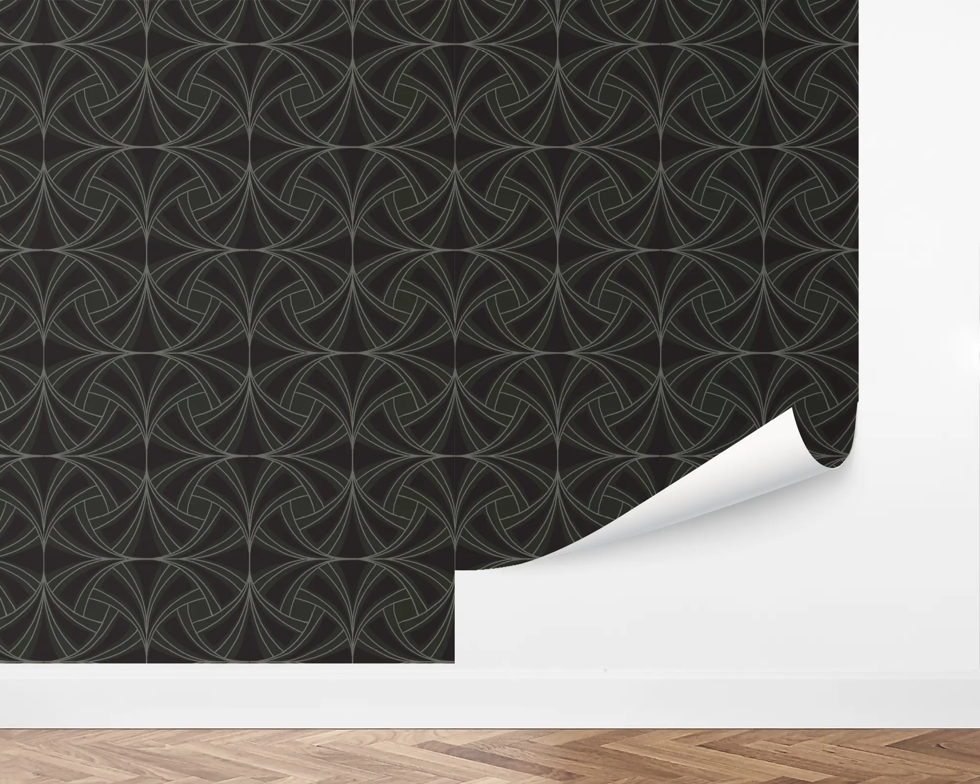Create a stunning space with our Intertwined Scallops Peel and Stick Removable Wallpaper. This deco-inspired design features arching lines and shapes over a dark background. Customizable with any of our beautiful colors and paper types, this wallpaper is the perfect way to give your home some vintage elegance.