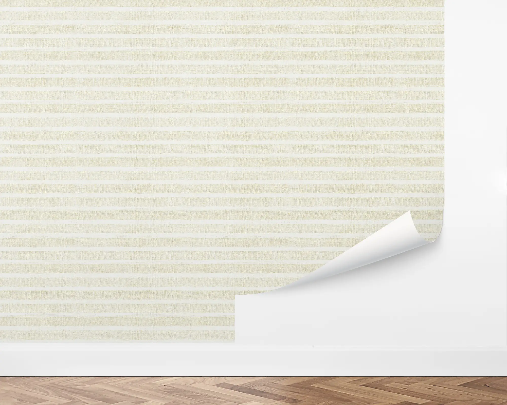 This Knit Stripes Wallpaper features a soft horizontal stripe pattern inspired by woven textiles for a cozy, timeless look. The subtle neutral tones and textured effect make it the perfect choice for bedrooms, nurseries, living rooms, or modern farmhouse interiors. With easy peel and stick application, this removable wallpaper is renter-friendly and provides a warm, inviting upgrade to any space.