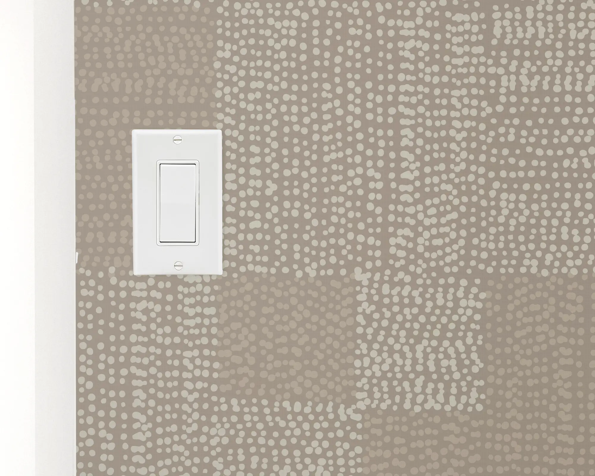 Our Knobby Kilim Peel And Stick Removable Wallpaper brings the look of a handwoven rug to any wall in your home. Textured dove and shore circles are dotted all over an ash background. Personalize with endless combinations of colors to match your interior style perfectly!