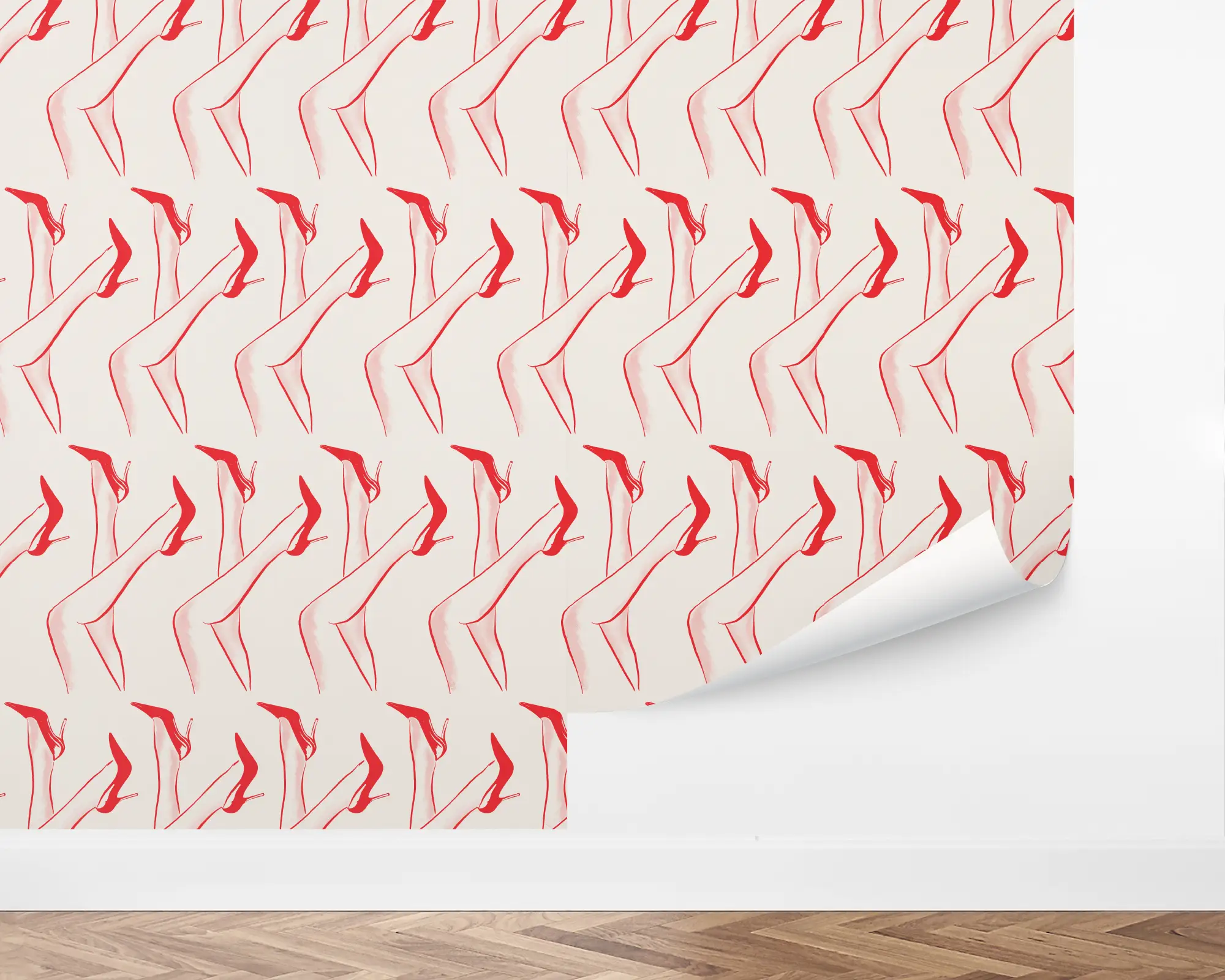 Turn up the drama with our Legs Up wallpaper, featuring bold red high-heeled legs in a playful, fashion-inspired repeating pattern on a creamy background. This cheeky and modern design is perfect for dressing rooms, walk-in closets, home bars, or creative spaces where you want a flirty statement wall. With its retro pin-up vibe and easy peel-and-stick application, this wallpaper adds instant personality and bold style to any interior.