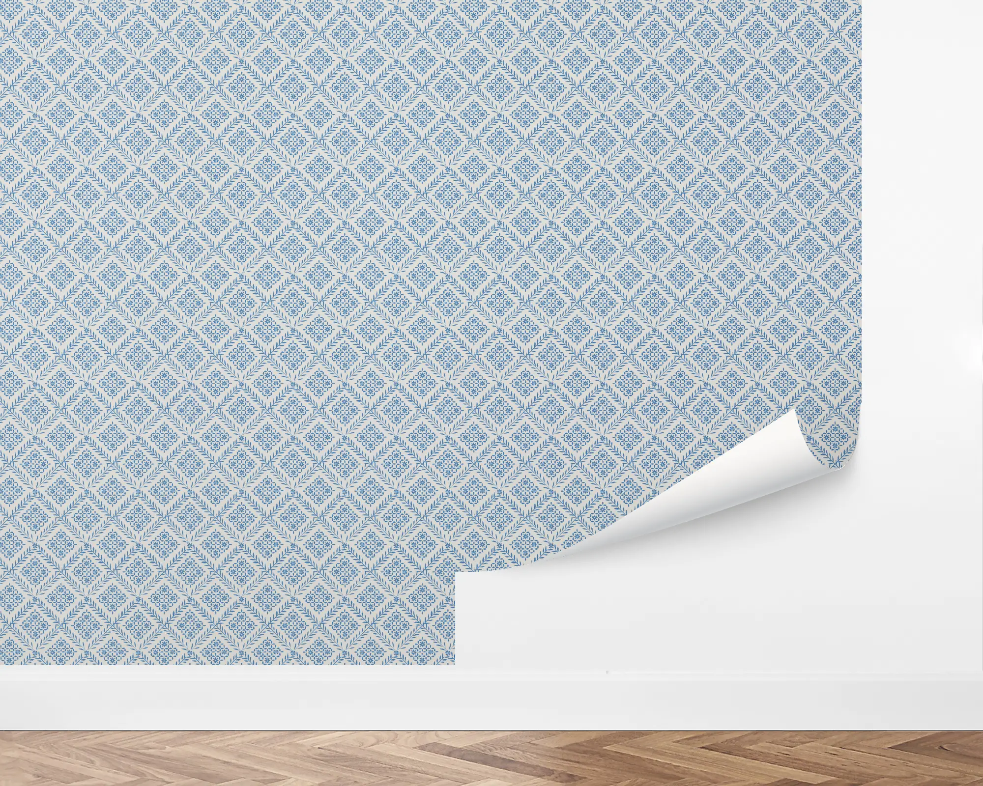 Santorini Tiles wallpaper brings Mediterranean charm to your home with a crisp blue and white geometric tile-inspired design. This timeless pattern evokes sunlit Greek islands and coastal breezes, perfect for brightening hallways, kitchens, or accent walls. Available as peel and stick or traditional wallpaper, and fully customizable in over 200 colors to suit any space.