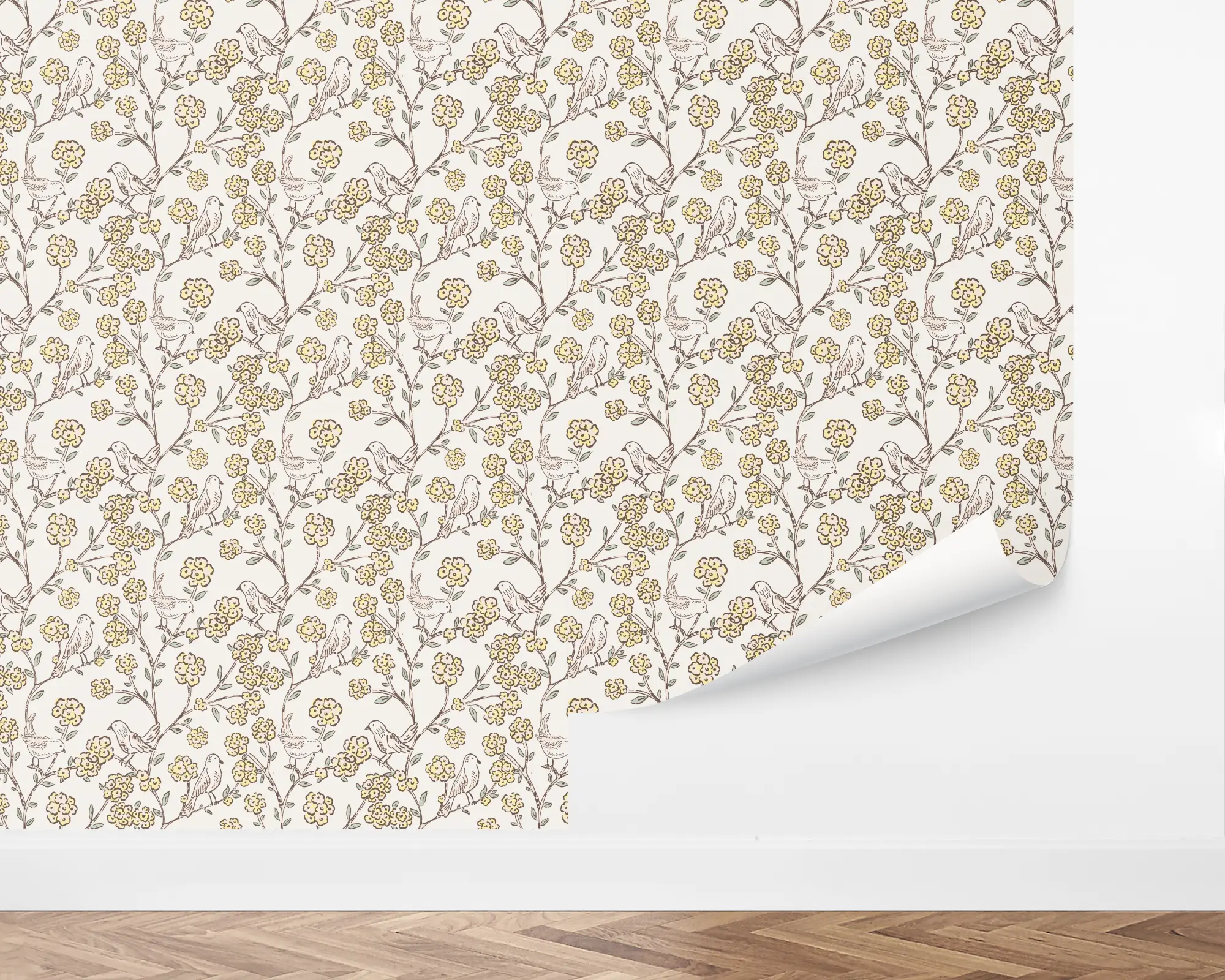 Create an adorably charming space with our Sumi Birds Peel and Stick Removable Wallpaper. This sweet design features doodled songbirds playing in flowered tree branches over a neutral background. Create yours with any of our gorgeous colors and choose from any of our versatile paper types to fit your needs.