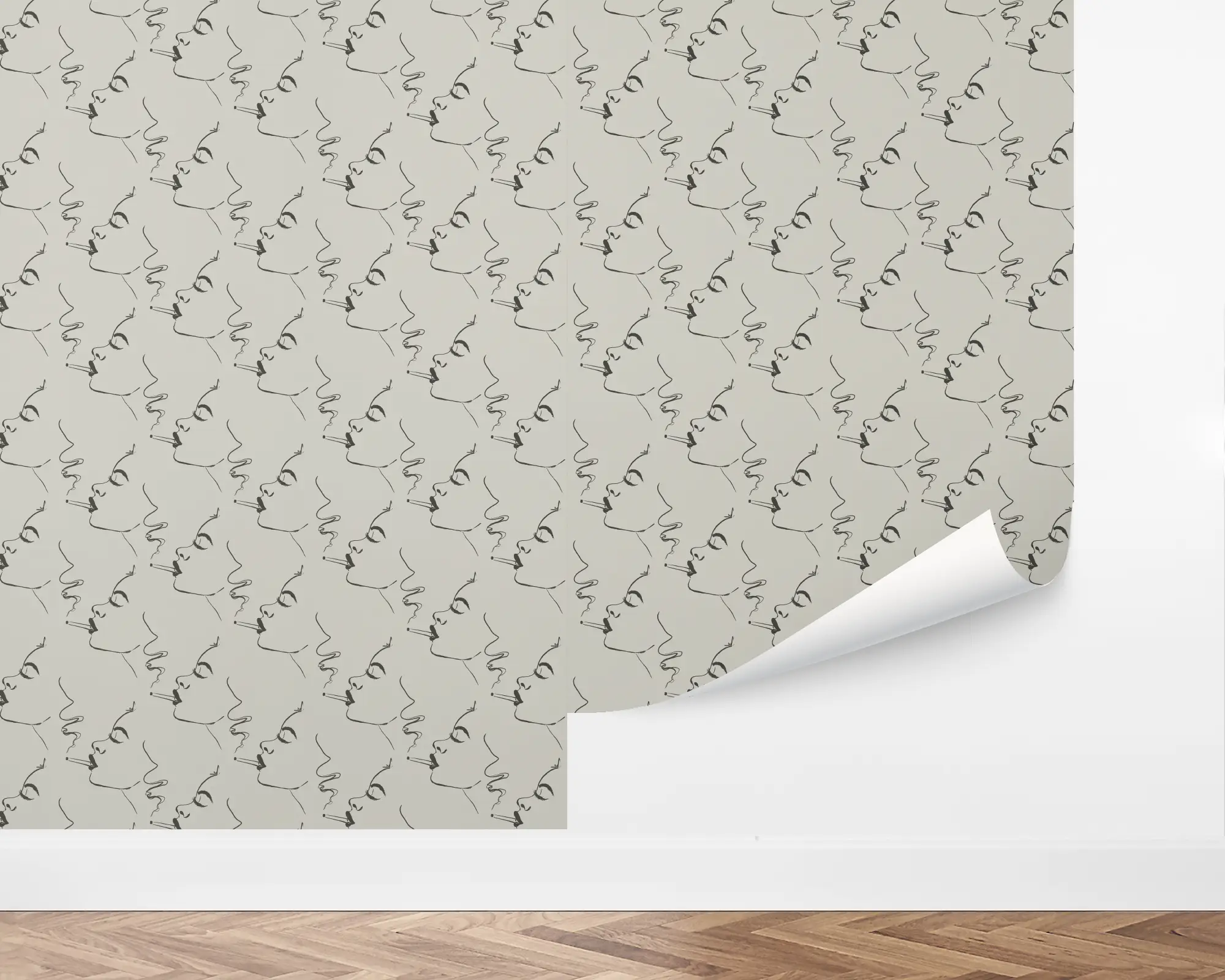 Elevate your walls with our Velvet Smoke Wallpaper, featuring elegant continuous line art faces in a soft gray and cream palette. This modern minimalist peel and stick wallpaper offers a sophisticated balance of abstract art and timeless design, perfect for bedrooms, living rooms, offices, or entryways. Easy to apply and removable, this stylish wallpaper makes a striking yet subtle statement in any contemporary interior.