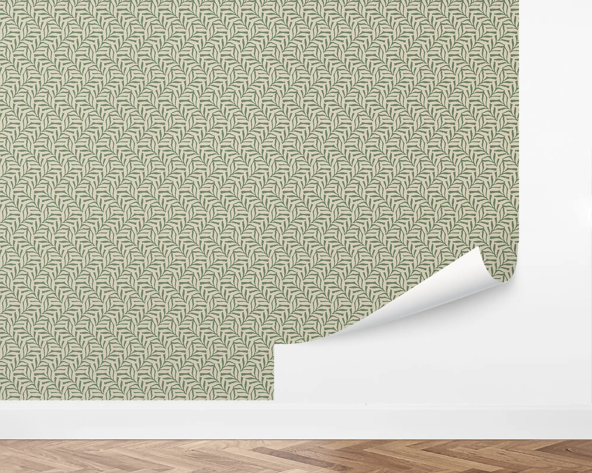 The Wellington Lee Wallpaper offers understated elegance with a timeless geometric vine pattern in soft olive green on a warm cream background. Inspired by mid-century design and classic British interiors, this wallpaper blends organic simplicity with refined sophistication. Perfect for dining rooms, entryways, or serene office spaces, this removable peel and stick wallpaper delivers effortless style with modern convenience and easy customization.