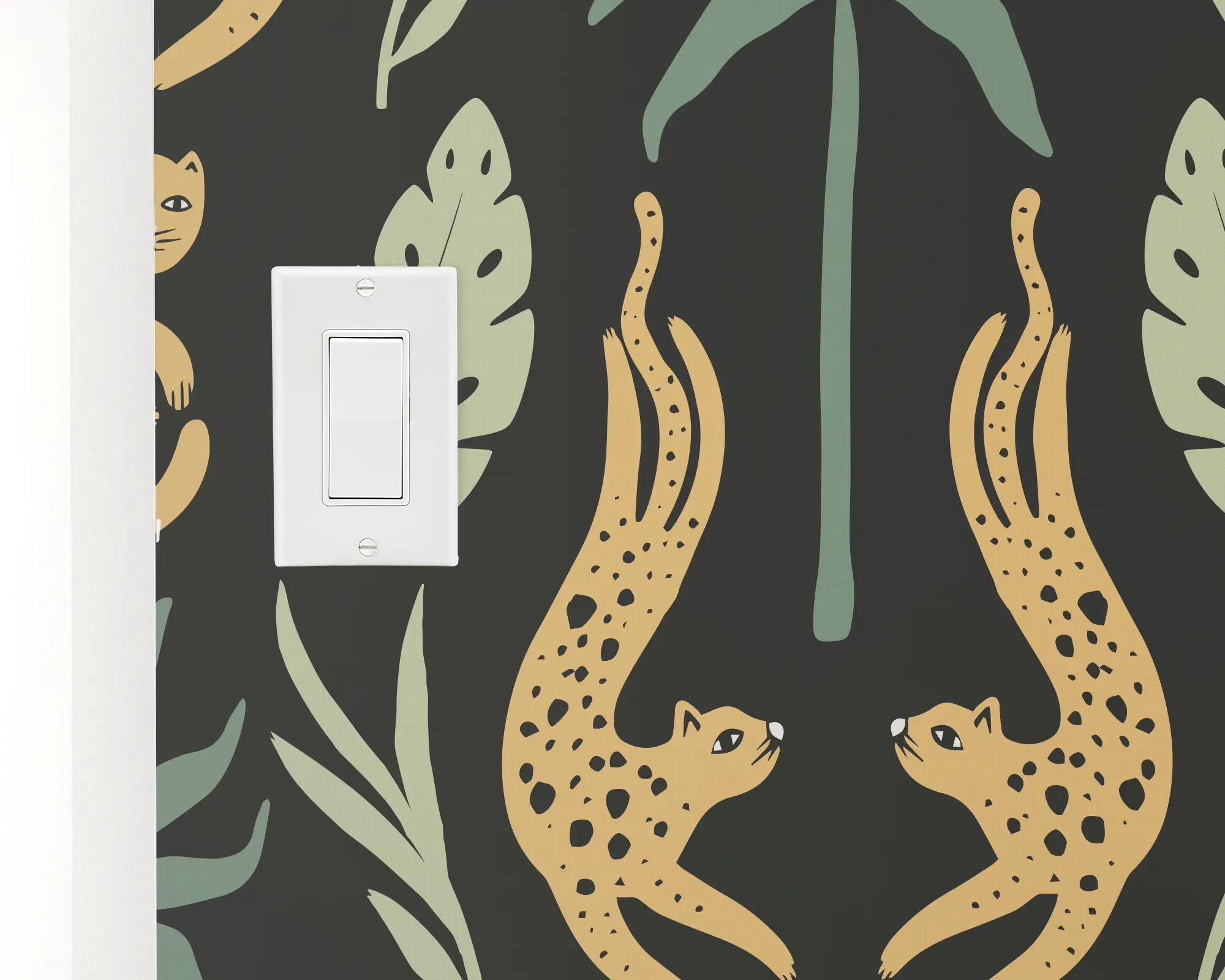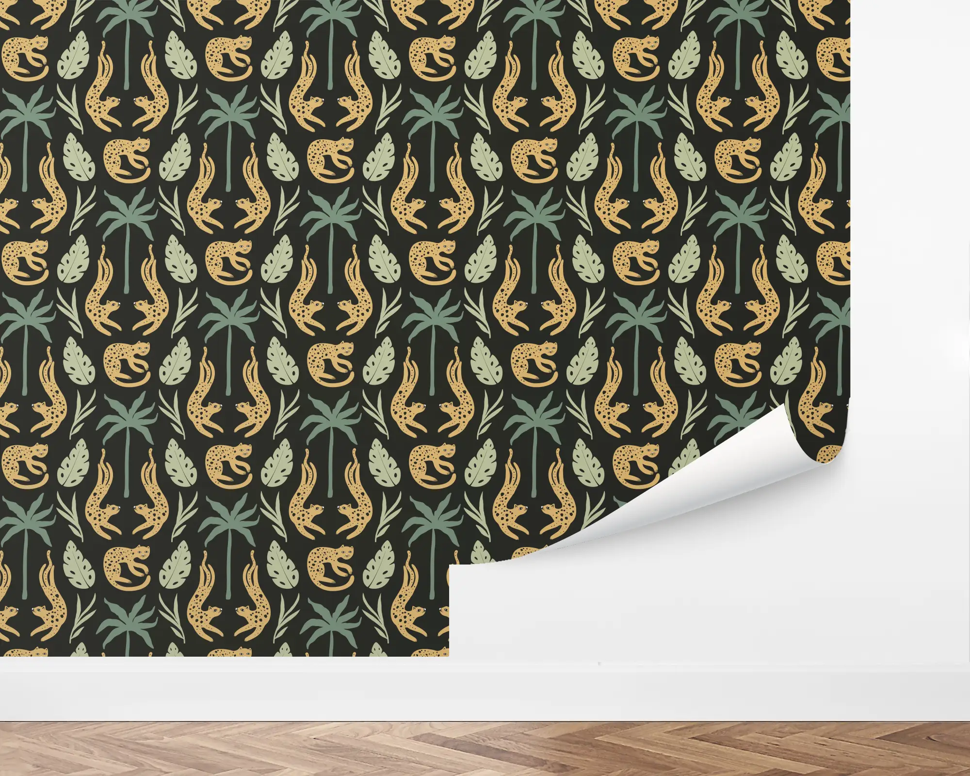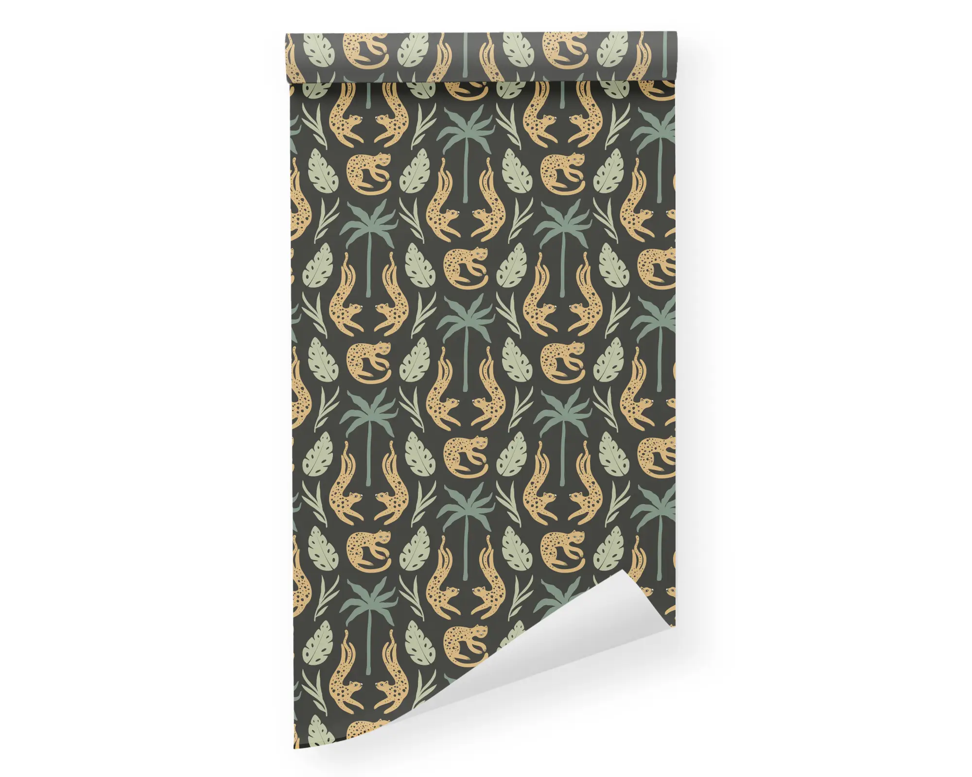 Bring your wild side out on any wall in your home with our stylish Wild Cats Peel and Stick Wallpaper. Illustrations of spotted cats, palm trees, and foliage are placed on top of a charcoal background. Customize with color combinations that are sure to fit your personal style!