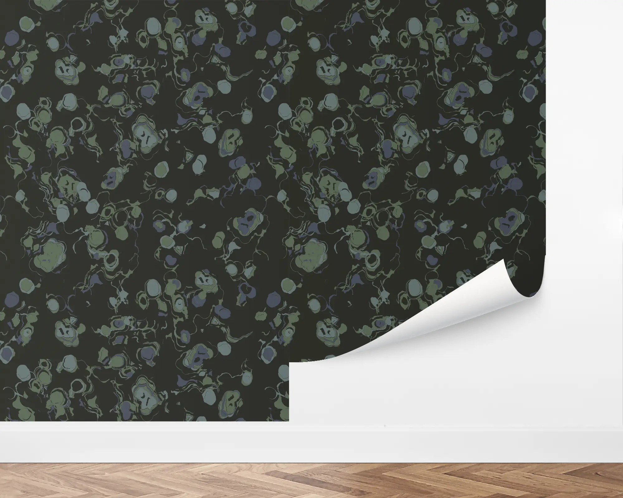 Express your personality with our Winkler Ripple Peel and Stick Removable Wallpaper. This unique design features a mottling of blue and green paint dots over a dark background. Customizable with any of our beautiful colors and paper types, this design is the perfect way to give any room a moody, artistic flair.