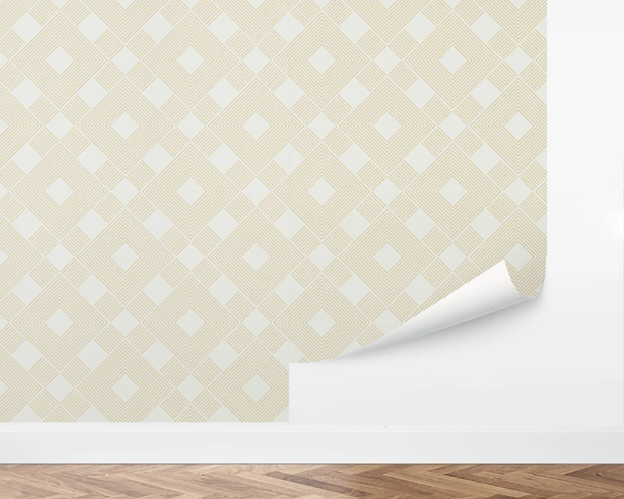 Add style to any wall in your home with our Woven Diamonds peel and stick removable wallpaper. A faux gold geometric pattern stands out on the cotton background. With endless combinations of colors to customize with, this is sure to make a statement!
